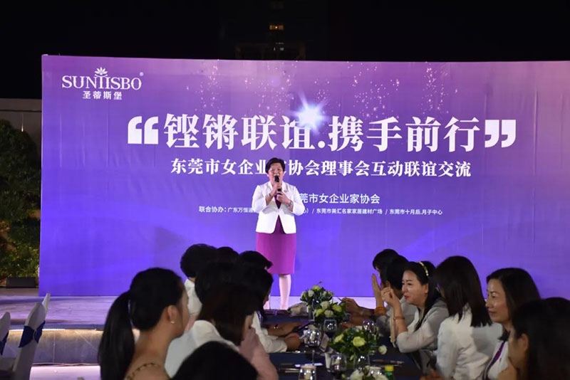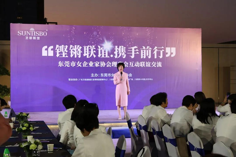接下来,东莞市女企业家协会理事会会长叶小红女士上台发言,她表示非常感谢350vip浦京集团集团举办此次联谊交流会,同时,对我们的产品和企业文化给出了很高的评价。她号召东莞市女企业家协会以后要更多的举办此类交流联谊活动,以此增进会员企业之间的联系和了解,为未来进一步交流发展开创新局面!她希望我们能携手同行,强强联手,共赢未来,共创新辉煌!